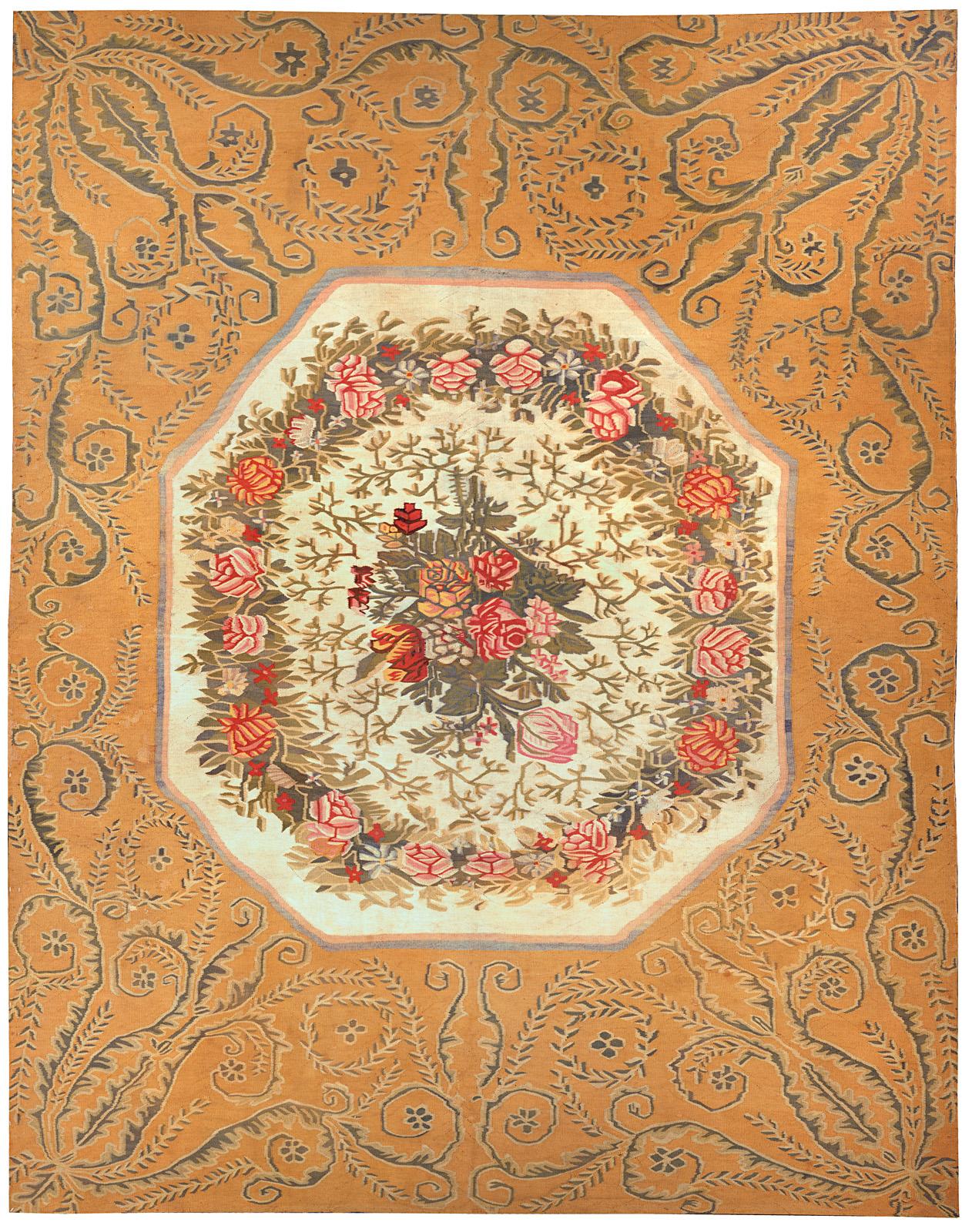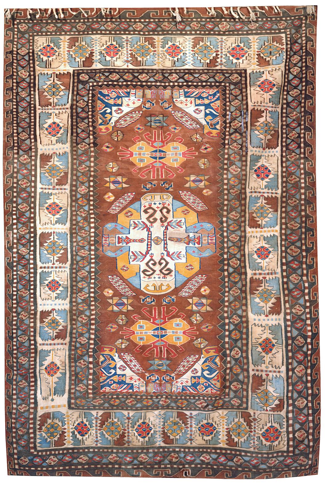 Flat-woven carpets can be as formal and elaborate as the slit-tapestry woven masterpieces from the Royal Aubusson workshops in France or as hypnotic as the powerfully simple color-blocked warp faced kilims woven in 16th century Turkey. This diversity includes the brocaded flatweaves of the Caucasus, the Safavid kilims of 16th century Iran and the baroque floral kilims of 19th century Bessarabia.