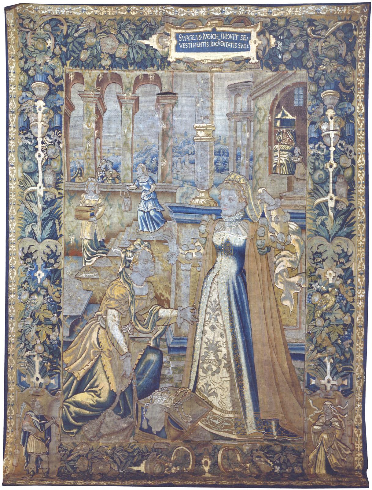Many of the great figures of the Old Testament and apocrypha were depicted in tapestry, including: Noah, Abraham, Jacob, Moses, Joshua, Gideon, Samson, David, Daniel, Elijah, Esther, Susannah, and Tobias. The New Testament and the apocryphal gospels was also a rich source of subject material. Tapestry sets were woven depicting scenes from The Life of the Virgin, The Nativity, The Flight into Egypt, The Life of Christ, The Passion, The Acts of the Apostles (designed by Raphael), as well as numerous lives of Saints. The sacred subject matter meant that many of these tapestries were designed to portray the holy stories powerfully in pictorial form to elicit awe, and as an aid to worship.