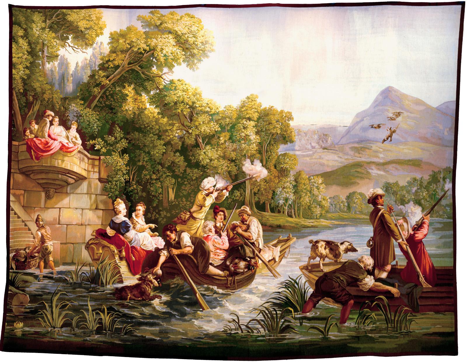 The early 19th century is best known for the “Art” tapestries produced at the Gobelins after designs by contemporary artists, which were produced alongside copies of earlier designs from the 16th to 18th centuries. The second half of the century saw the beginnings of another design revolution. Today we are most familiar with the work of William Morris (1834-1896) who, along with the Pre-Raphaelites, such as Edward Burne-Jones (1833-1898), created designs that were inspired by medieval tapestry that predated Raphael. Significant numbers of works were produced at Merton Abbey, and are among the most important contributions to the Arts and Crafts movement. In the 20th century tapestry design was impacted by modernism, and by large numbers of artists including Pablo Picasso (1881-1973), Fernand Léger (1881-1955), Marc Chagall (1887-1985). More recently works by Alexander Calder (1898-1976), Frank Stella (1936-), and Henry Moore (1898-1986) have been commissioned. In addition there are numerous works by artist weavers, who not only design but also weave the tapestry themselves, breaking the centuries old division between designer and weaver.
